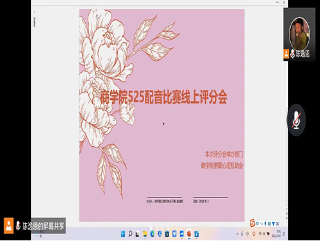 作品汇总完毕后,法学院、商学院心助会会长团、部长团秉着公平公正的原则,严格按照评分标准于4月11日、4月15日以线上会议的形式分别对两院参赛作品进行评选。此外,评委们就此次参赛作品作出整体性的评价,认为作品总体质量较高,题材新颖,其内容紧扣心理健康主题,赞颂积极向上的人生态度。其中,经管2112班“针锋相队”、法学2103班李心语同学脱颖而出,荣获一等奖。根据大赛规则,一等奖作品将被推选至校赛参与角逐。至此,本届525心理健康配音大赛院内选拔赛圆满结束。