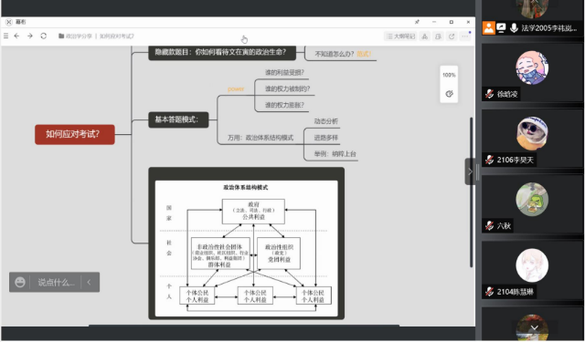 在期末备考压力向大一学生袭来时,“Blossming Legal Youth”学业辅导互助营做了许多事来帮助大一学生复习迎考。2022年5月2日晚上8点,“Blossming Legal Youth”以线上分享会的行使向大家分享政治学考试和写作技巧,由来自法学2005班的李祎岚同学主讲,线上分享的行使并没有限制同学们的学习热情,依然有不少同学参加了本次分享会。