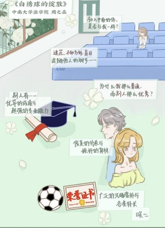 最终,《白绣球的绽放》在此次四校联合漫画类作品大赛决赛中斩获三等奖。此次活动不仅为同学们表达心中所感,展现自我风采提供了平台,还推动了全体师生进一步重视心理健康问题,积极培养阳光、健康的良好心态。希望在日后的学习生活中,法学院学子们能够在持之以恒的热爱中寻找自我,在并不完美的现实中接纳自我,以一份青春热血,谱写人生精彩篇章。