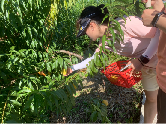 采摘过程中,同学们与自然亲密接触,饱满个大的黄桃捧在手上,咬一大口,果肉饱满,味道香甜。置身于果园绿色的生态环境中,沁人心脾的果香伴随微风袭来,给同学们留下了美好的回忆。