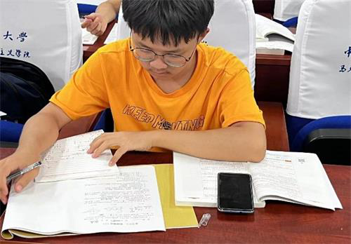刚刚迈入大学的校门,稚气未脱的脸上是掩盖不住的新奇。从这一张张照片中可以看出22级的新生以高三未完全消失殆尽的习惯,坐在书桌前,习惯性地画重点,习惯性地写下不懂的问题,习惯性地整理笔记,习惯性地演算一道道数学题。在晚自习中学生可以将当天的课程进行总结,及时消化一天所学的内容,从而达到温故而知新的效果。