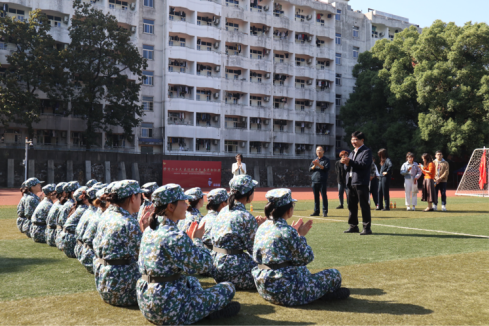 首先,院领导集体观看了2022级本科新生所在的4营20连4排的军训汇演。通过跨立、行礼、停止间转向等五项考核项目的汇演,4排的马克思主义学院的学子们取得好成绩,获得了4营汇演的第一名。
