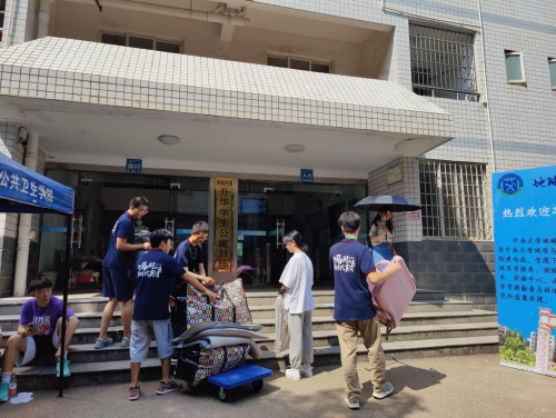 9月9日早晨,迎新工作正式开始,身着藏蓝色马院文化衫的志愿者身影在校园中不间断地穿梭着、忙碌着。每天早晨,志愿者们便早早到达迎新点,帮助新生们搬运行李,并把他们送到相应的宿舍。