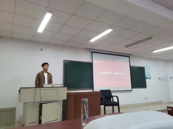最后,李丹妮同学作为学联精神学习会的主讲人,带领大家深入学习了学联精神。学习内容由习近平总书记贺信的主要精神、党中央致辞的主要精神、全国学联大会报告的主要内容、《中华全国学生联合会章程》的修改情况、《关于学联学生会工作人员改进作风服务同学的若干规定》五个部分组成。此外,主讲人李丹妮还向大家介绍了一些案例,希望引起大家的反思,明确研会的服务定位。