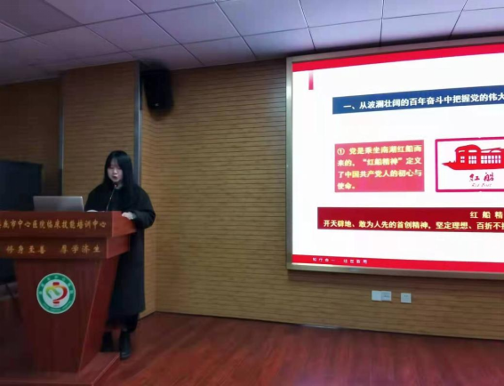 李桂芳同学面向青海省西宁市大通县居委会的成员讲述了中国共产党百年来的光辉历程,传输了党的伟大精神,在宣讲与学习中真切体会到了为人民服务、走群众路线的党的方针。李雪妍同学则面向娄底市中心医院不同部门的党小组成员讲述党与国家、人民命运交织、风雨兼程的发展历程,以及从中衍生的不同时期有代表性的伟大精神,对精神的内涵做出了时代性解读,意在以伟大精神激励党员干部,凝聚干部力量,助力干部队伍的精神建设。