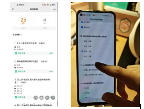 此次知识竞赛主要以两会的基本知识和两会政府工作报告为依据,进行题目设定。并且在提交答案后会生成答题解析,对问卷题目进行回顾,帮助同学们了解两会,有效地加强同学们对题目的印象。