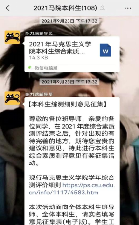 为帮助马克思主义学院更好的建设完善相关的学生工作制度,马克思主义学院面向马克思主义学院本科生进行综合测评意见收集工作。