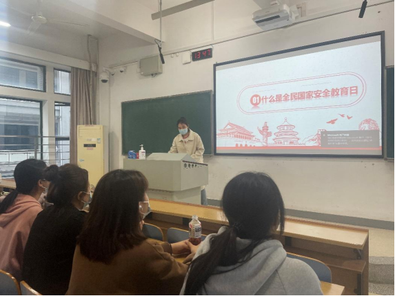 首先,班长结合时事热点与身边案例,为同学们详细讲解了国家安全的相关知识,包括国家安全的含义、维护国家安全的意义、总体国家安全观的内涵、国家安全日设立的背景等等,使同学们对国家安全有了更全面、深入的了解。班长还播放了国家安全教育的宣传视频,以生动活泼的形式进行了展示讲解。