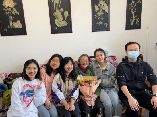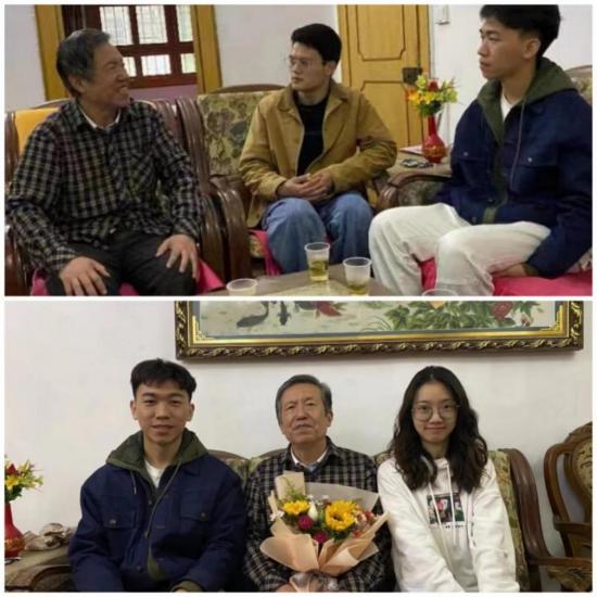 本次活动的第二支队伍为队长龙雯静带领的学生会青年志愿者队伍,队伍成员包括王欣茹、刘锦涵、王爽爽、肖劲峰,与马克思主义学院关工委委员黄碧辉老师进行了一对一上门志愿服务,服务项目主要为家务劳动。在志愿活动中,志愿者们对黄碧辉老师的居室进行了细致的清理,并为黄碧辉老师献上鲜花,表达了对老师的敬爱与亲近。