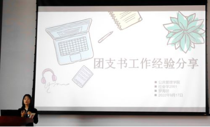 之后,计算机学院优秀团支书代表计科2005班邱慧燕与公管院优秀团支书代表社会2001班罗海丽分享经验。邱慧燕同学从如何通过团日活动增强班级凝聚力,团日活动的类型、参与度、创新,团支部宣传平台的搭建,日常管理以及团日活动总结的撰写等五个方面进行细致的分享,给予了新任团支书极大的启发。公管院罗海丽同学主要介绍了团支书的职责、日常活动和团日活动;特别地,介绍团日活动时,她向大家分享了提升团日活动支部成员参与度的方法——将团日活动的参与度作为班级入党推优的一个参考因素;此外,她认为优秀的团日活动应做到“创新联合、寓教于乐、宣传多样、切实示范”,团支部才能更好围绕支部核心、立足教育基层、服务支部学生。精彩的分享内容令台下的团支书们表示受益匪浅,聆听分享时还十分认真地记录与学习优秀团支部的宝贵建设经验,此后,计算机学院组织部部长盛童补充介绍了团组织的其他工作安排,进一步说明了团支书手册填写工作,并介绍了集“导学、讲学、研学、比学、践学、督学”六位一体的青年大学习线上平台学习体系。最后,会议在庄重的团歌奏唱仪式中闭幕。会议结束后,计算机学院、马克思主义学院与的公共管理学院团支书及活动嘉宾合影留念。