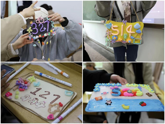 在手工创作环节,大家都踊跃地参与寝室门牌制作,同学们热情讨论,积极动手,现场气氛十分热烈。生活服务部为大家准备的背景音乐助力本次活动的气氛推向高潮,同学们都倾心投入创作,经过一个半小时灵感的迸发与细致的制作,一块块单调的木板在同学们的手中变为每一间寝室亮丽的名片。最后,每个小组依次上台向大家展示精心制作的寝室门牌,部分同学也向大家分享了门牌的灵感来源及其中的美好寓意。