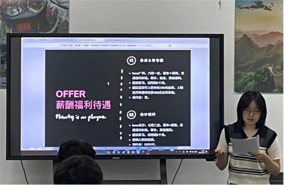 杨邱怡学姐聚焦于社会工作和养老服务领域,分享了自己的求职经历和选择社工岗位的原因。她提到了薪酬福利待遇、求职过程中的挑战以及个人对未来规划的思考。杨邱怡还向同学们分享了高端养老的行业现状,并展望了养老行业的前景,她鼓励同学们朝着个人规划的方向积极学习,以实现个人职业发展。