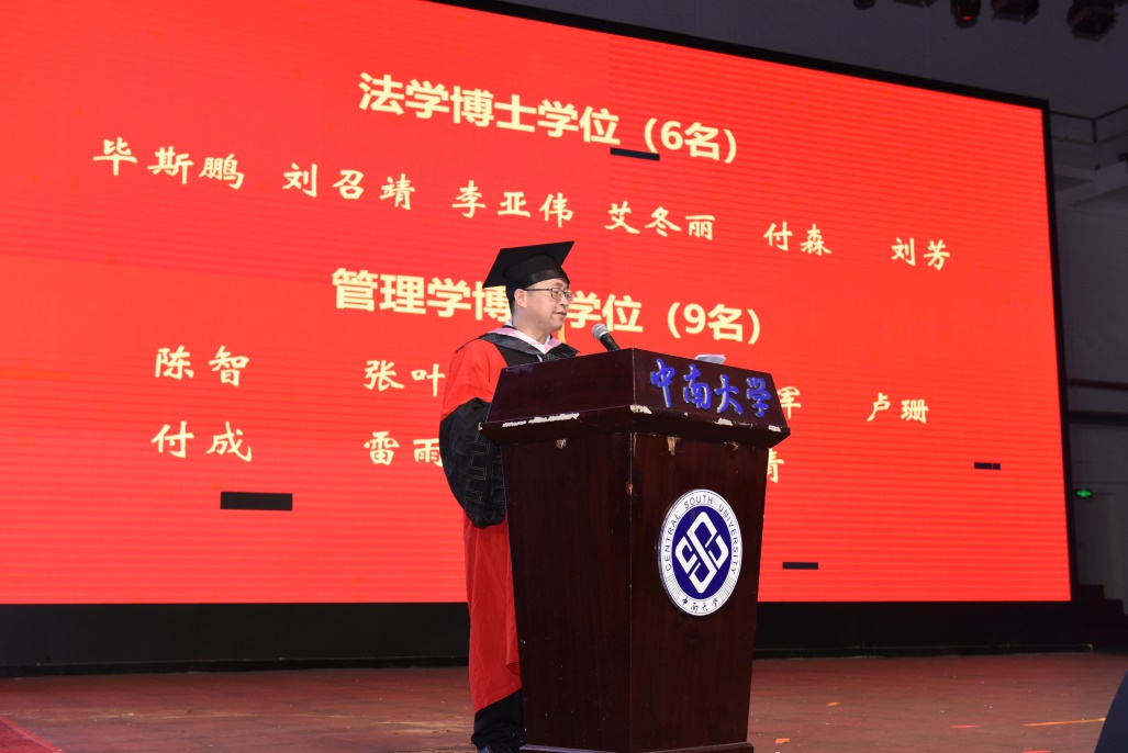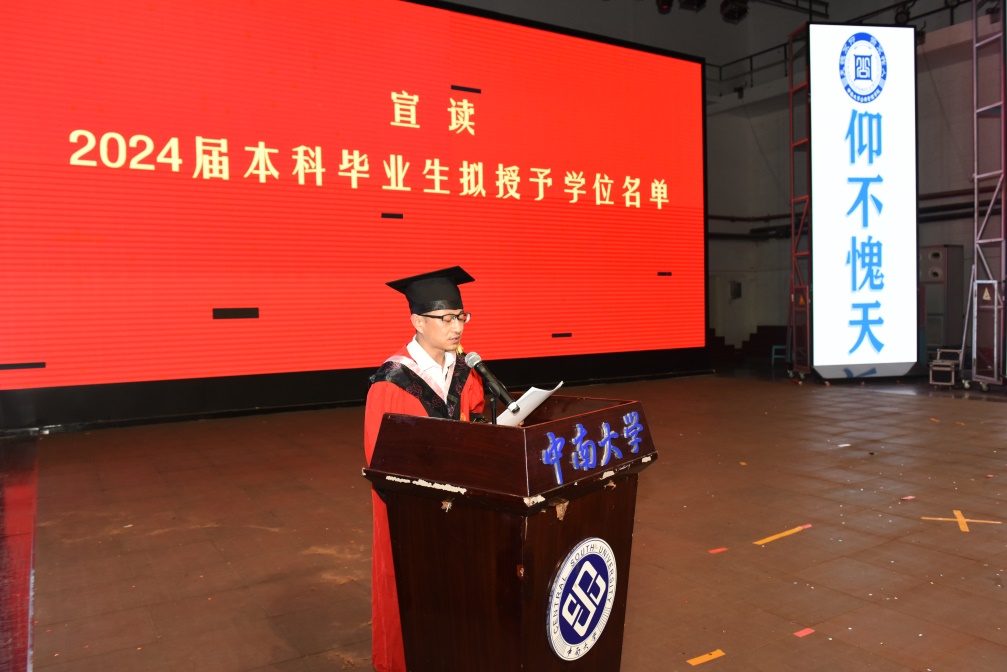 典礼在庄严的国歌声中开始。副院长李晓飞宣读了公共管理学院2023-2024年度学士学位授予名单,副院长潘泽泉宣读了2023-2024年度博士、硕士学位授予名单。公管院2023-2024年度学位授予情况,6人获法学博士学位、9人获管理学博士学位,22人获法学硕士学位,45人获管理学硕士学位,23人获社会工作硕士学位,189人获公共管理专业硕士学位,39人获法学学士学位,53人获管理学学士学位。