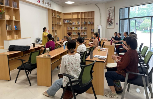 授牌仪式结束后,向书记带领师生一行实地参观楠竹社区的社区空间。在社区居家养老中心,师生参观了为老年人提供的一站式服务,感受到这里温馨如家的氛围;正在教室上课的老年鼓乐团激昂的鼓点和欢快的旋律,让师生见证了社区养老文化的活力与传承;在社群之家青少年STEAM教育科普中心里,孩子们的创意作品和安全的设施环境,则透露着社区对下一代的关怀与培养。此外,师生探访了社区工会驿站的“慈善超市”、“楠竹有咖”宝妈创业咖啡屋,这些独具社区特色的公共空间和基础设施,不仅丰富了居民的日常生活,也彰显了社区在创新治理模式和服务民生方面的不懈努力。