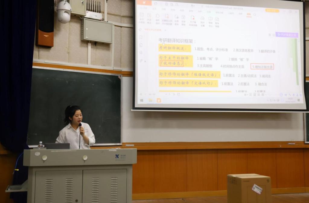 首先,主讲人凌葭伊老师以备考时间规划为切入点,将备考规划分成了基础、强化、专项和冲刺四个阶段,从多个角度对四个阶段应做的准备工作进行了详细的讲解。随后,凌老师对针对我院考研专业的部分考点进行讲解,为同学们解答了考研复习方面的疑惑,并重点对考研英语复习节奏及方法进行了详尽的介绍,包括英语单词记忆方法、真题复习方法等。