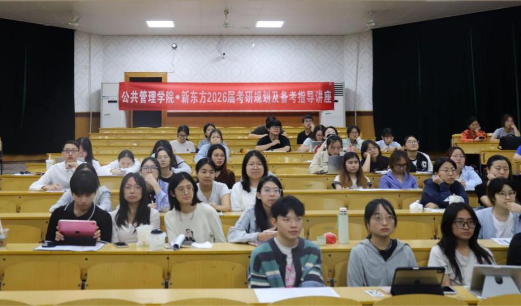 为了帮助学院想考研的同学更好地规划考研,获取备考经验,10月11日晚7时,公共管理学院2026届考研规划及备考指导讲座在铁道校区世纪楼D201室顺利召开,学院特邀请新东方老师为同学们进行2026届考研院专规划及备考指导。公管院22级、23级本科生六十余人参加,讲座由院分团委就业指导部成员朱肖肖主持。