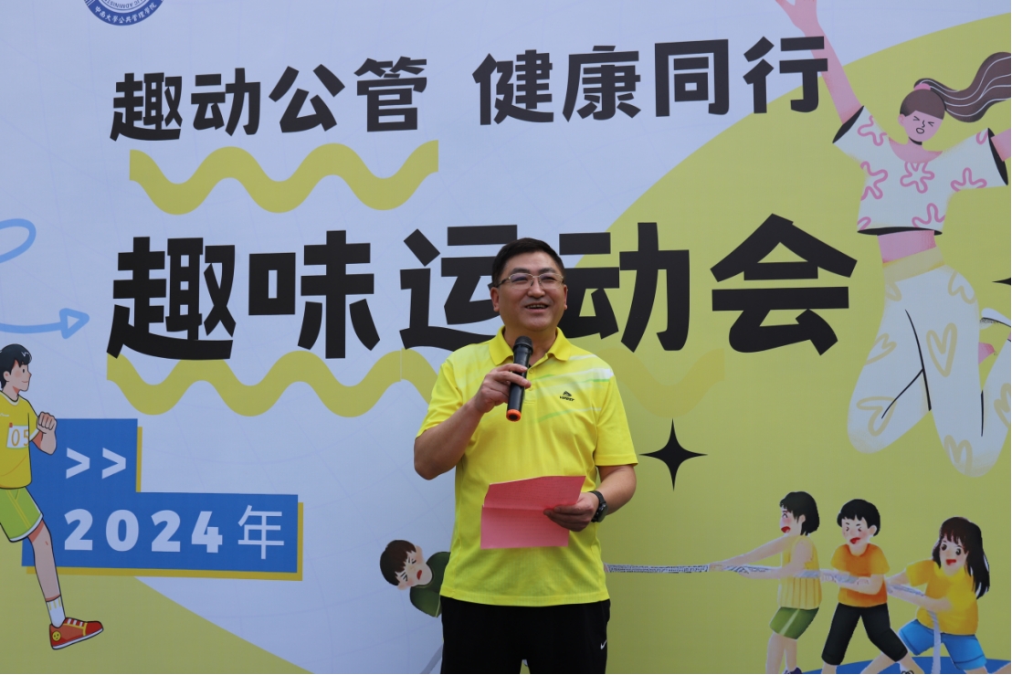 为响应“健康中南”号召,促进师生在体育活动中交流互动,11月3日下午2时,公共管理学院在铁道学院六食堂西侧的篮球场开展“趣动公管,健康同行”趣味运动会。学院党委书记杨旭东,党委副书记耿贵斌,院学工办主任徐立坤,公管系严惠麒,社会学系韦晓丹、张晓倩,院分团委书记梁慧等老师出席。全院研究生、本科生跨年级跨专业组成12支队伍,共180余名学生参加。运动会由黄汨倩同学和李思瑶同学主持。