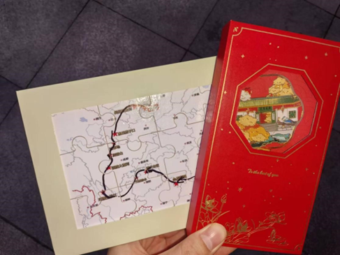 伴随着落日余晖,本次活动接近尾声,各队伍成功会师后展开了长征知识问答,并完成了打卡点所获地图碎片的拼图并在其拼图上绘出长征路线。