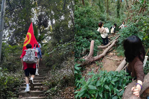 活动过程中,各队伍先后去到了爱晚亭、长沙会战第九战区长官司令部指挥所旧址、长沙会战纪念碑三个地方进行打卡学习。徒步过程中,同学们互帮互助穿过树高林密的山间小道,一前一后登上狭窄陡峭的连绵阶梯,共同前行,实地感受红军长征的艰辛与豪迈,重温红军长征时期的革命历史和峥嵘岁月。
