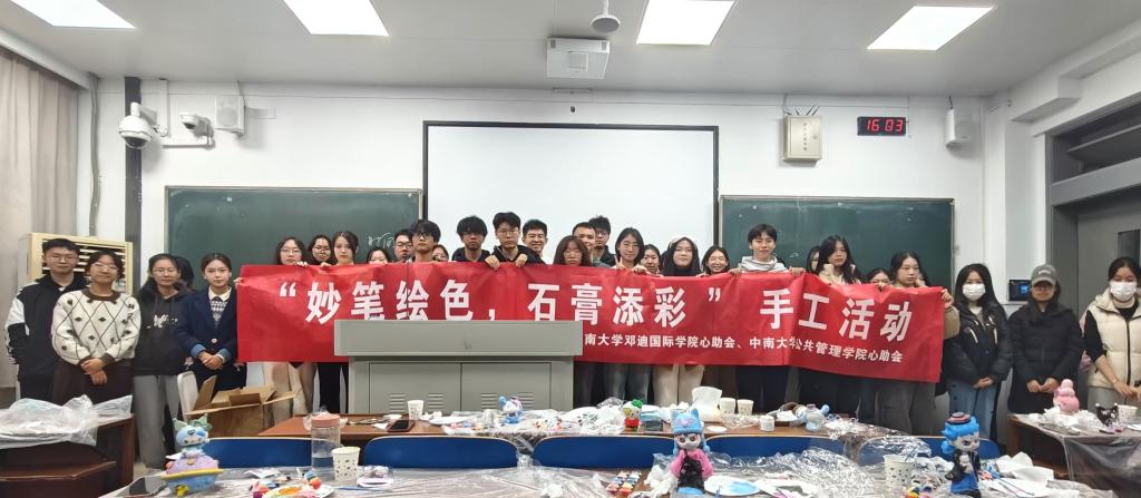 11月24日下午3时至5时,由邓迪国际学院、人文学院与公共管理学院三院朋辈心理互助会联合举办的“妙笔绘色,石膏添彩”手工活动在william威廉英国官网新校区A座102教室成功举办。此次活动吸引了众多学生参与,反响热烈,不仅丰富了学生们的校园生活,也为学校的心理健康教育工作做出了积极贡献。