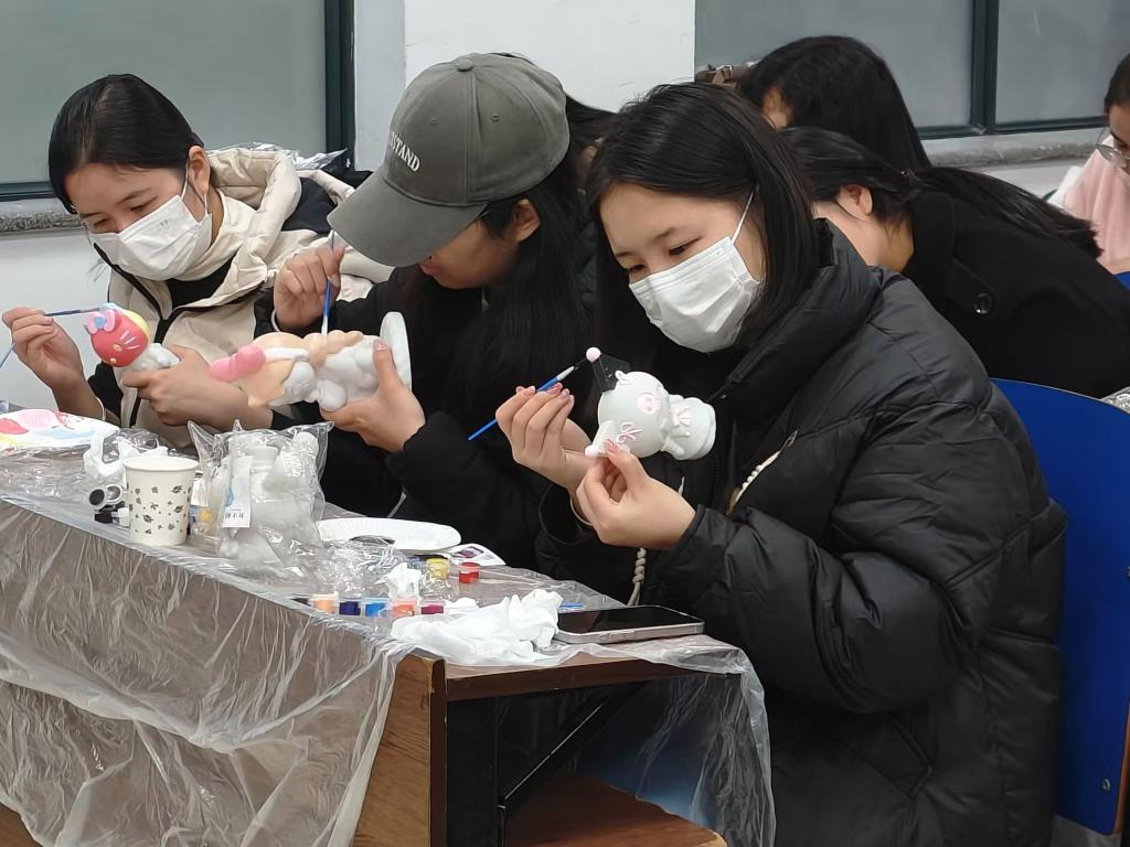 “妙笔绘色,石膏添彩”手工活动旨在通过绘制石膏娃娃的方式,帮助学生缓解学习和生活压力,感受生活中的色彩,体验创作的乐趣。