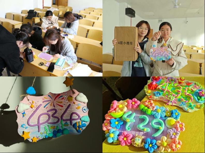 制作寝室门牌时,同学们热情讨论,积极动手,各组宿舍成员利用画笔、黏土等材料对宿舍门牌进行装饰和创作,分工有序、配合默契、气氛融洽。最终创作出的专属宿舍门牌,不仅凝聚了每个成员的心血,更为宿舍成员留下了一段美好而珍贵的回忆。最后,每个宿舍将制作好的门牌进行展示交流,同学们踊跃发言,积极介绍宿舍门牌特点并分享门牌的灵感来源及其中的美好寓意。