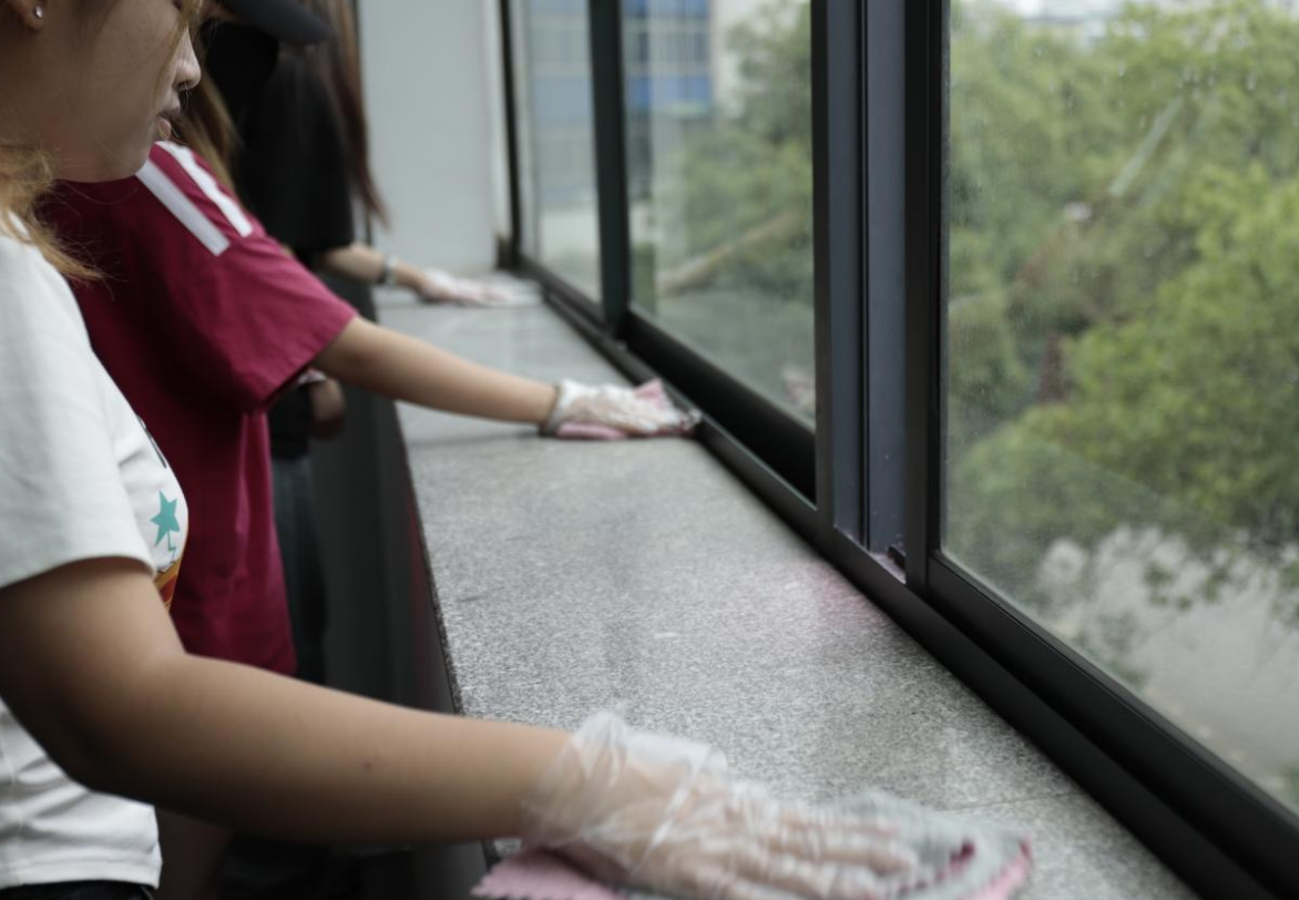 志愿者们热情高涨,用实际行动诠释了劳动之美。相互协商之下,负责人将志愿者们划分为三个小组,每个小组都有着不同的清扫职责。分工明确后,志愿者们便热火朝天地忙碌了起来。擦窗组用抹布认真地将每一个落在窗户上的灰尘擦拭干净;扫地组细心的将地面上的垃圾收拢并回收;拖地组用拖把一遍又一遍擦洗地面。在志愿者们共同努力下,天心校区旧貌换新颜:教学楼内,门窗玻璃明净透亮,地面洁净无瑕,各类教学设施被整齐有序摆放。