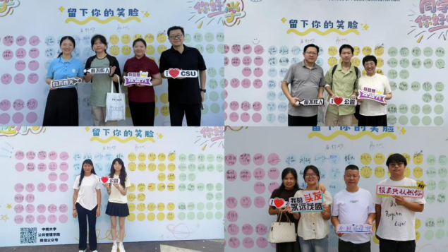 迎新活动期间,志愿者们耐心为新生及家长答疑解惑,介绍校园基本情况,并为新生送上纪念品礼包。为丰富迎新活动,志愿者们策划了推送集赞抽奖活动与“同声母猜猜乐”趣味游戏,有效拉近了新生与学院的心灵距离。此外,迎新点还设置了新生签名墙,新生在签名墙上落笔,定格与中南的初遇时刻,留下青春印记。