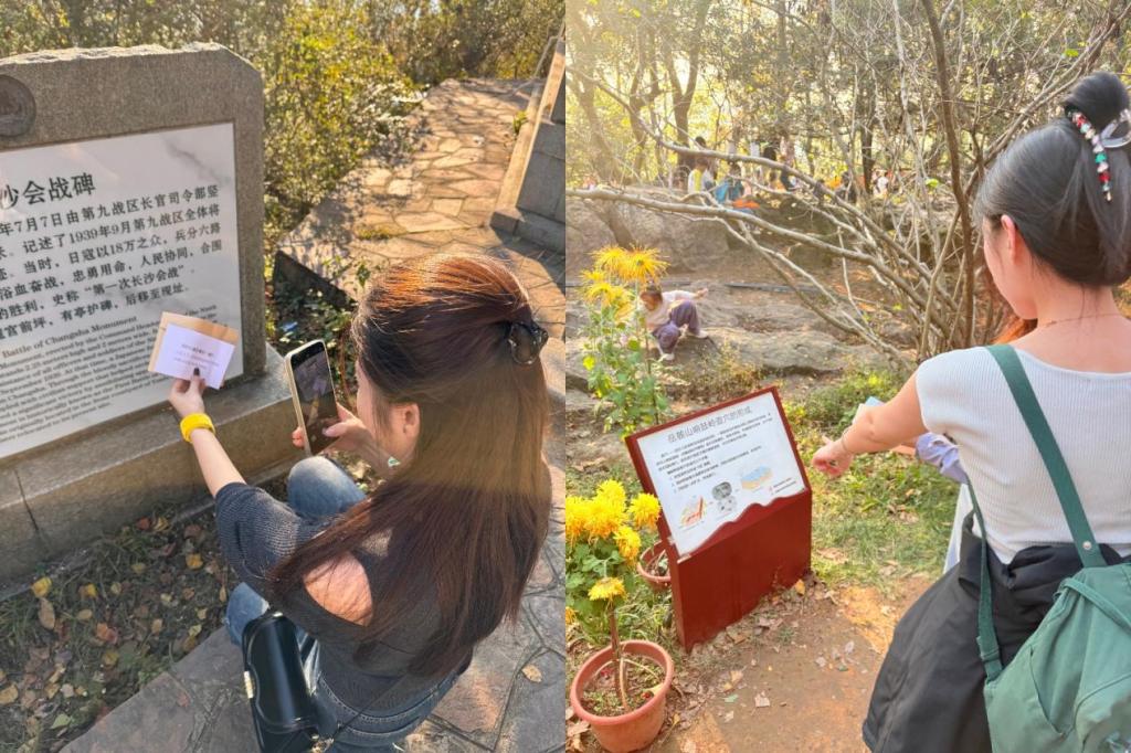 19支“情报小队”在任务手册的指引下,携带“密信”,依次前往肖劲光铜像纪念园、长沙会战纪念碑、楚风碑三个任务地点打卡学习。徒步途中,各队伍穿行于树影斑驳的山径,驻足倾听历史的回响,情景式模拟了抗战时期情报传递的工作历程,追忆抗战时期的峥嵘岁月,更切身体悟了先辈们坚守使命、默契协作的革命情怀。