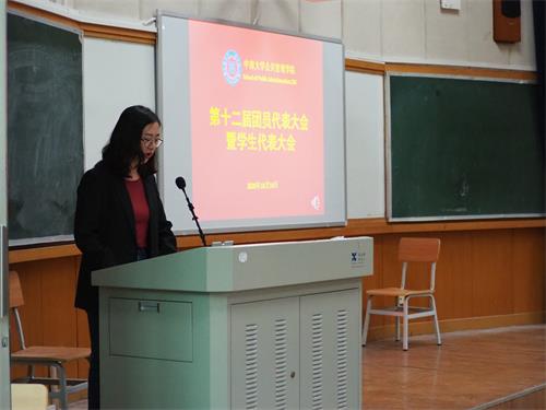 大会接近尾声,公管院分团委书记闵迪宣读最终选举结果。经过团员、学生代表严格按照大会选举办法投票,大会监票、计票人员认真核实,最终选举出关芮、何玉萍、王芳芳、余若冰为第十二届分团委副书记,聂柳宏、潘琴、万可为第十二届学生会主席团成员。