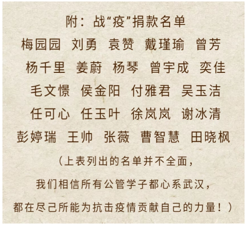 疫情从未隔绝爱和行动,在学生党员的带领下,我院研究生积极参与捐款捐物,累计捐款3845元,同学们以自己的微薄之力,助力一线抗疫工作。
