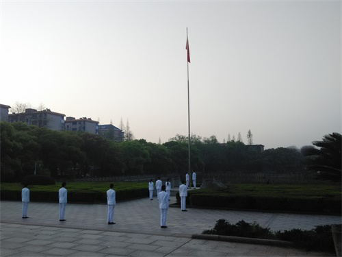 已值初春,早晨的寒气仍未褪去。同学们早早地来到本部校区,并在各班班委的有序组织下站好队形,等待升旗仪式开始。6时50分,仪式正式开始。伴随着激昂的奏乐声,国旗队的11名护旗手们神情肃穆、着装整齐、步伐一致,将五星红旗护送至升旗台下。国歌声响起的同时,全体同学行注目礼并高唱国歌。在铿锵有力、振奋人心的国歌声中,同学们共同见证了五星红旗缓缓升至最高点。礼毕,护旗手们迈着整齐的步伐有序退场。仪式结束后,同学们背起书包,迈着轻快的步伐离开广场,一天的紧凑充实的学习生活由此开始。
