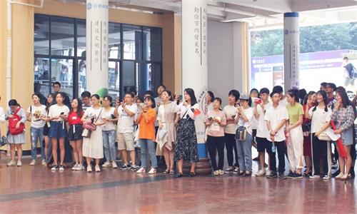 在正式开始之前,快闪活动便得到了学院的高度重视,院团委学生会的积极组织、学院领导老师的带头参与和同学们的踊跃报名都为活动的举行奠定了良好的基础。9月29日中午,工作人员和表演人员提早到场,精心布置表演场景,准备音响设备。