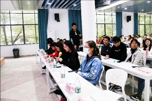 经验交流结束后,各院团支书答辩活动正式开始。答辩以模拟团日活动为主题展开,六院分为十三个小组,三个小组围绕一个主题展开答辩。在讨论结束后,每队选派代表上台进行三分半钟的答辩,回答评委提出的问题,并由嘉宾现场打分点评。这一活动将大会气氛推向高潮,各小组集思广益,以制作精美的ppt和多样化的展示形式诠释规定主题。答辩过程中,小组成员立足当今国情,结合自身实践,运用专业知识,突出各支部的特色点和创新点。各位代表答辩陈述条理清晰,重点突出,逻辑性强,展现了各小组的独特风采和魅力。整个活动在思维的碰撞中引导着同学们秉承红色革命精神,关注国家实时和社会动态,学以致用,实干筑梦。