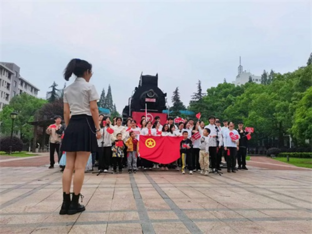 百年恰是风华正茂,岁月镌刻青春荣光,为喜迎党的第二十次全国代表大会胜利召开,热烈庆祝中国共青团成立100周年,深入贯彻共青团中央“喜迎二十大、永远跟党走、奋进新征程”主题教育实践活动,2022年5月1日下午三时至四时,学院在铁道校区铁路园红色火车头处开展了“团歌嘹亮,红心向党”主题快闪活动。本次活动由学院分团委主办,组织部承办,视频美工部及文艺部协办,院分团委书记闵迪、辅导员梁慧出席,学院46名学生代表参与。