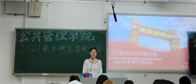首先,梁慧老师进行2022年春季学期总结。她从本学期的五勤课堂、21天晨读打卡、问渠长廊等学习情况,和核酸检测、团日活动、反电信诈骗等工作情况两个方面进行了全面总结,对日常事务进行了细致提醒,希望大家筑牢安全底线、保持身心健康、合理规划暑假以及尽快适应新环境。此外,梁老师寄语21级学子们,勇敢面对挫折,主动多元发展,在未来的学习、工作与生活中才能不断成长成熟。