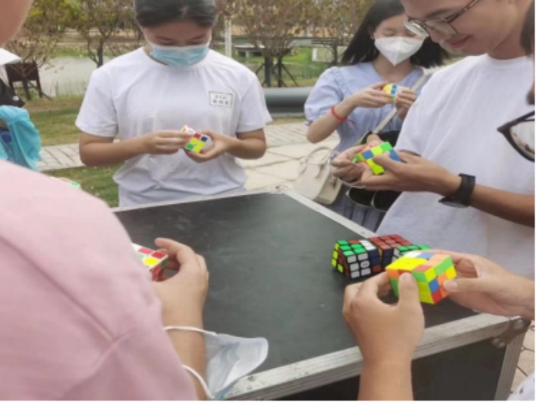 本次活动由诵读美文、中南数学故事分享会、魔方计时还原挑战、逻辑数学趣味游戏等小活动组成。首先由同学上台朗诵数统院征文集《不能忘却的记忆》选文,优美的文字带领在场的各位再次感受数学的魅力;接下来便是魔方计时还原比赛,魔方社的同学们向新生展示众多种类的魔方,并现场教导新生如何快速还原。计时还原比赛结束后,工作人员宣读数学趣味小游戏规则,同学们拿着事先准备好的写有数字的卡片,参与到一个个妙趣横生的游戏中。