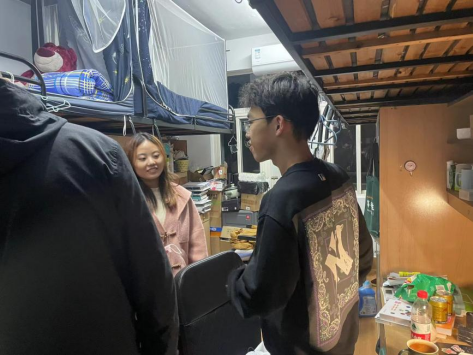 在走访过程中,各年级辅导员老师和同学们亲切交谈。耐心细致地向同学们讲解宿舍安全以及学校疫情防控相关要求,同时针对宿舍存在的不足之处,现场提出了整改意见。王芬老师、王孟正老师对于大四毕业生从衣食住行到心理状态,从专业学习到生涯规划,字字珠玑,由浅入深,用话家常的方式,将关心带给大四年级的毕业生。张泽超老师、仇远林老师、谢昕蕊老师从生活点滴出发,提醒大家天冷注意保暖加衣,要注意宿舍用水用电安全。