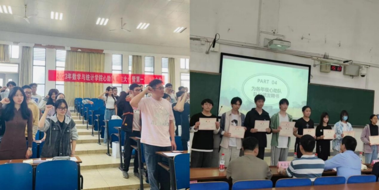 会议伊始,安书记致辞。他强调要提升心理互助队工作的能力,要“学会育人,和谐相处”,并创新心理健康教育方法,以确立多层次的心理健康教育目标,从而达到心理育人的目标。紧接着是心助队全体成员宣誓,在场的所有同学起立,右手握拳举起,跟着宣誓代表心助会培训部部长金瑾琦一起庄严宣誓。继而是为各年级心助队队长颁发聘书,各年级心助队队长有序上台领取聘书并拍照留念。最后,心助队代表上台发言,她紧抓心助队成立初衷与自身体会,表达对心助队未来的展望。至此,数统院2023年大学生朋辈心理互助队成立大会圆满结束。