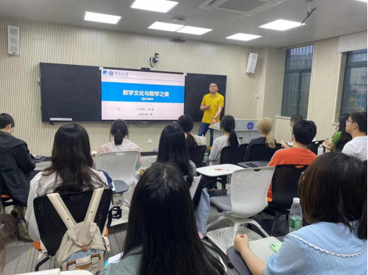为强化学生专业认知,培养学生对数学的兴趣,提升学生综合素养能力,数统院依托师生互动课堂特别打造“数海撷英,启能未来”数学创新人才成长系列讲坛知新辅学特色活动,为同学们搭建与学院教师近距离面对面交流的机会。讲坛第1期——《聚焦数学文化,领略数学之美》于5月22日晚7点顺利开展,本期讲坛由学院龙珑老师分享,帮助同学们开阔数学领域的视野,领略数学科学的前沿成果,遨游于数学知识的海洋。
