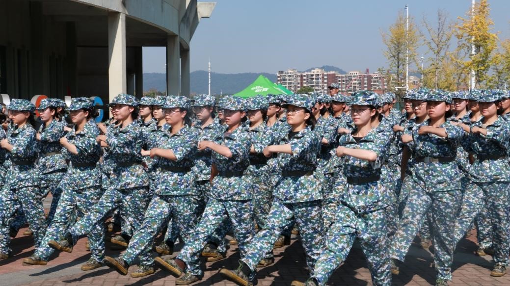 随后,二十九连分列式方阵昂首阔步,进行了队列汇报展示。他们动作协调一致,步伐坚定有力,口号铿锵响亮,精神抖擞,意气风发,展现了新一代数统学子的青春风采和精神风貌。