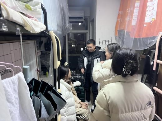 2月24日、25日两天学生陆续返校,辅导员老师深入校园和学生寝室,切实掌握了解学生返校状况和思想动态。深入宿舍与同学们交流寒假感悟,督促同学们新学期养成良好的生活和学习习惯,新学期引导同学们共创寝室文明风尚。在走访过程中,辅导员老师和同学们亲切交谈,耐心细致地向同学们讲解宿舍安全相关要求,关心慰问因自然灾害导致生活困难的学生,同时针对宿舍存在的不足之处,现场提出整改意见。
