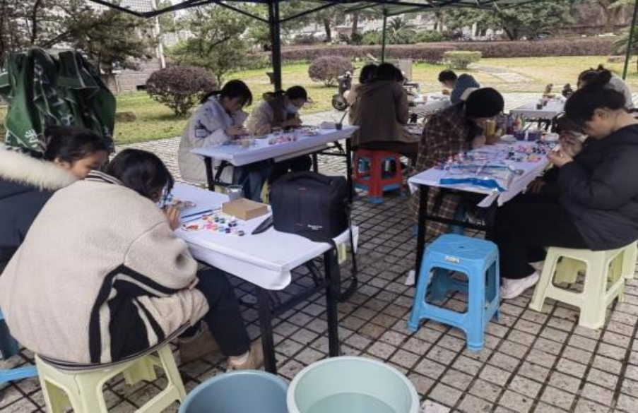 本次公益义卖活动以DIY涂鸦摆件为主要形式。志愿者们在南校区服务广场摆设了数个工艺品涂鸦的摊位,提供各种颜色的颜料和刷子,以及一些参考样品。参与活动的师生可选择的DIY项目包括石膏娃娃,石板画,数字油画,手印画等,购买相应物品后就可在指定区域进行涂鸦创作。