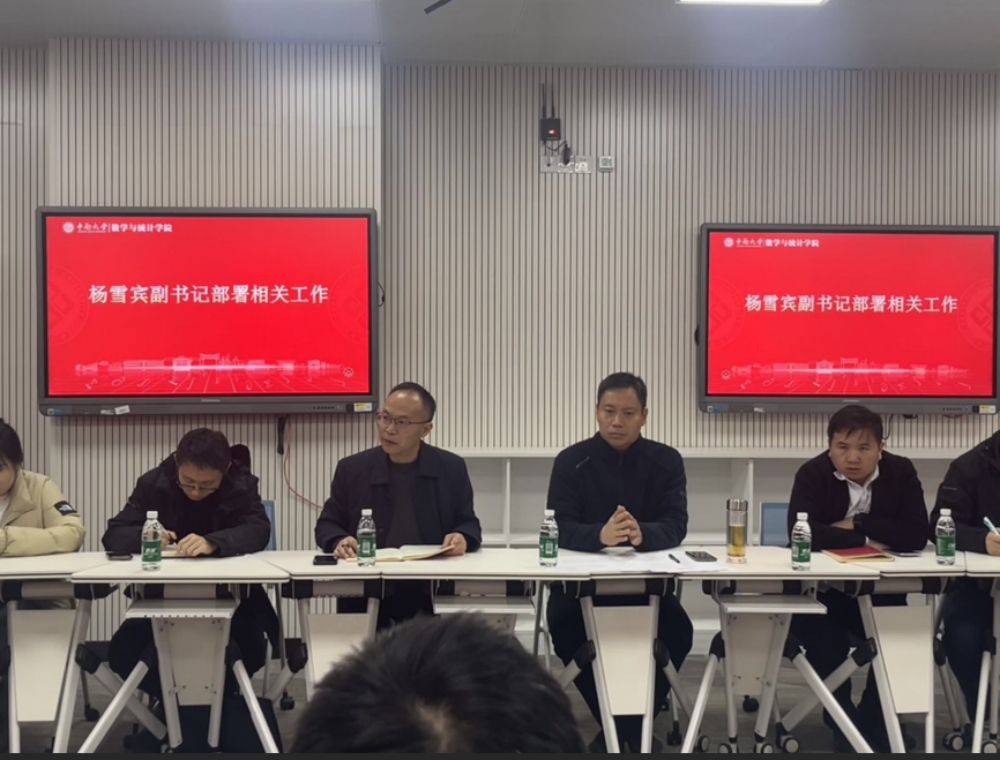 为落实立德树人根本任务,推动新学期学生工作顺利开展,2月26日下午4时,数学与统计学院于数理楼245会议室召开2025年新学期全体班导师会议。数学与统计学院党委书记胡玉玺、党委副书记杨雪宾、全体班导师和辅导员参加会议。会议由辅导员王孟正主持。