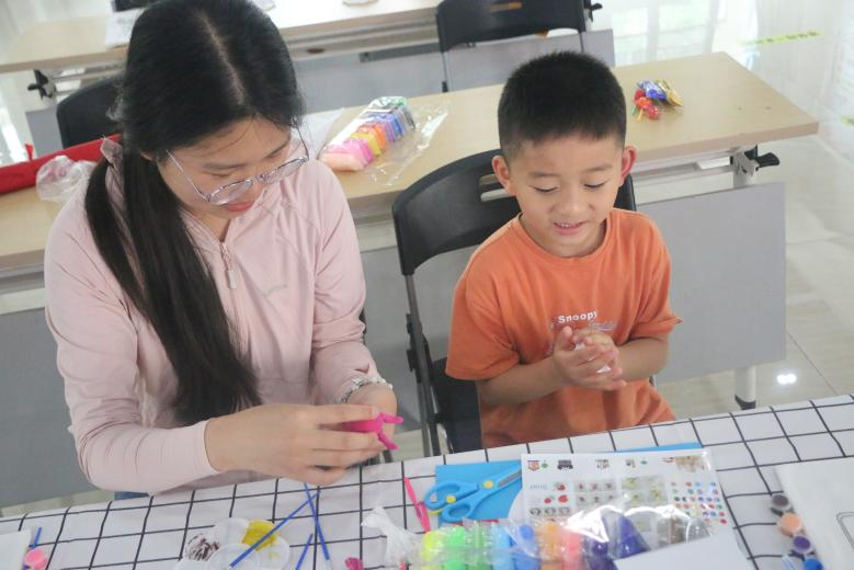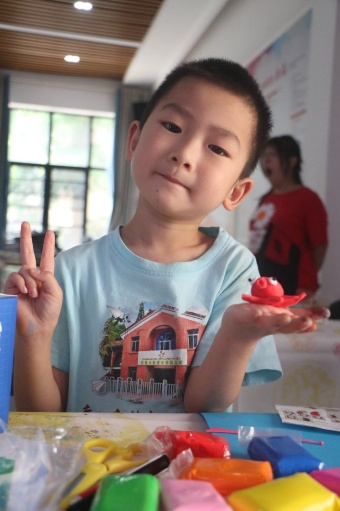 粘土画制作环节同样趣味十足。在志愿者的引导下,五颜六色的粘土在孩子们手中变换形态,化作一幅幅充满童趣的劳动场景。孩子们沉浸其中,小手灵活地揉捏、塑形,欢声笑语回荡在整个活动现场。