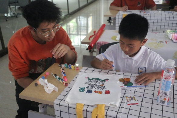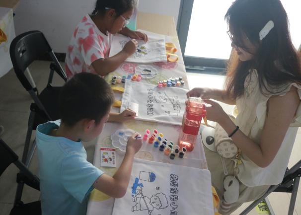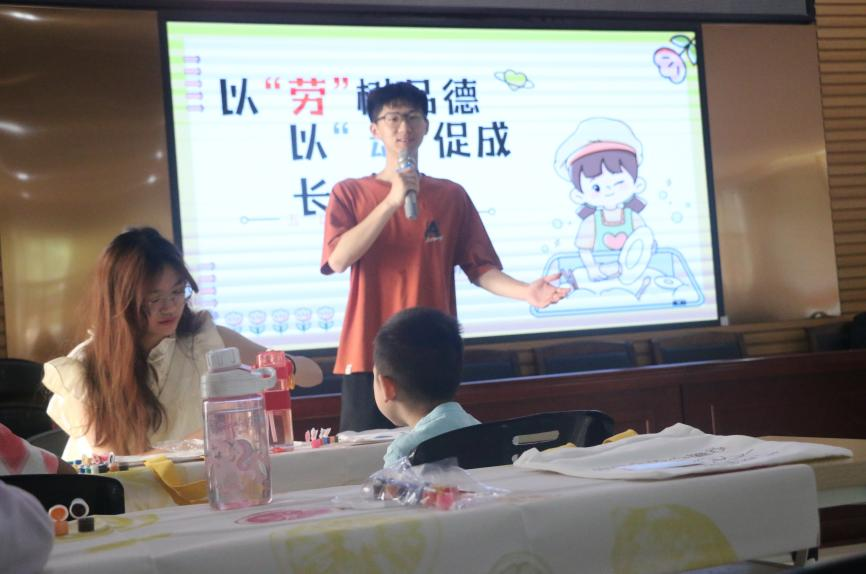 知识问答结束后,手工制作环节成为了孩子们展现创意的舞台。洁白的帆布袋上,印着工人、农民等 “劳动最光荣” 主题的卡通绘图。孩子们手持画笔,认真地为图案上色。志愿者们穿梭其中,耐心指导。很快,一个个色彩斑斓的劳动主题帆布袋诞生,孩子们脸上洋溢着自豪的笑容。