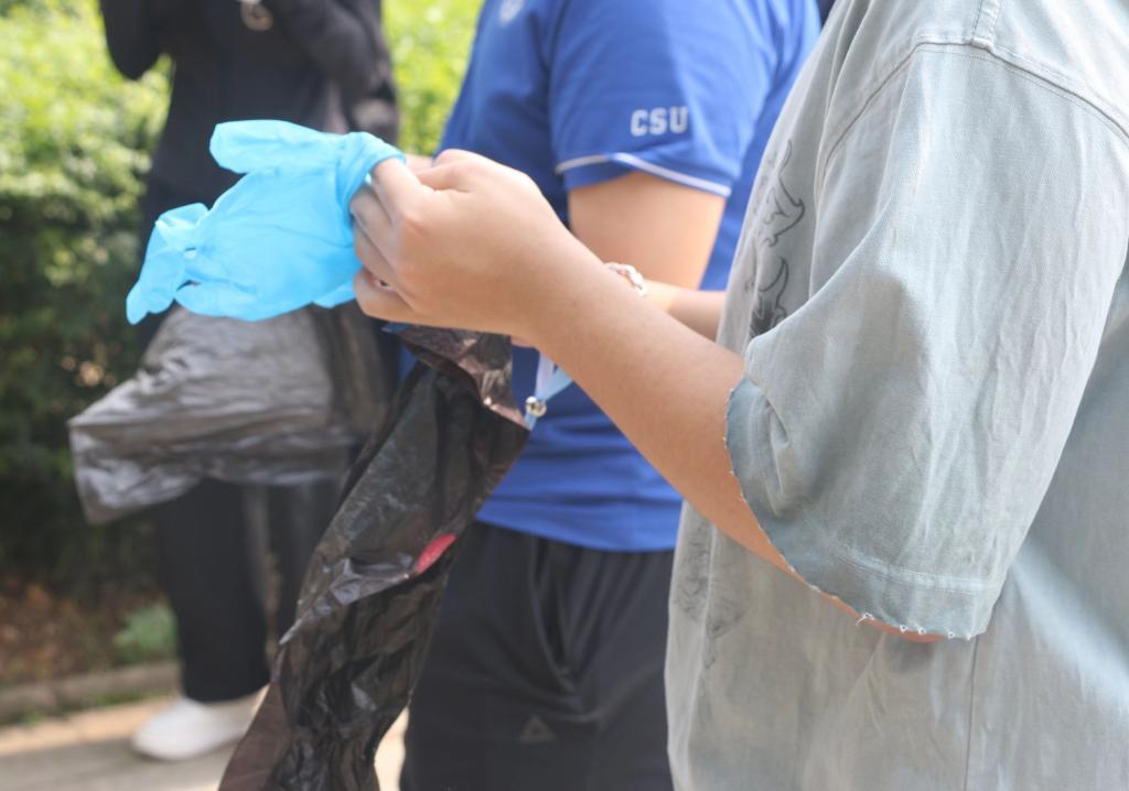 登山过程中,同学们没有忘记此次活动的环保初心。大家纷纷行动起来,参与岳麓山清扫,捡拾垃圾,用实际行动守护青山。在山顶根据垃圾收集的数量发放积分。登顶观光长廊时,斜阳为漫山青翠镀上金边。最后,大家再次回到起点,登记过程中获得的积分,根据积分排名,获得精美奖品。