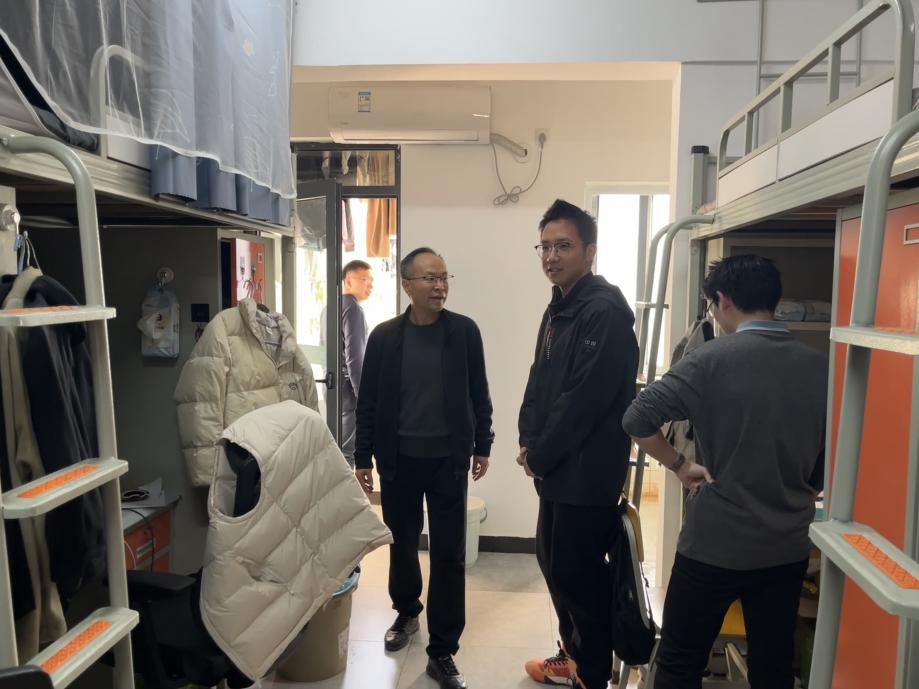 走访过程中,杨书记与同学们亲切交谈,细致询问大家的日常学习与生活情况,并对宿舍整洁的环境与和谐融洽的氛围给予充分肯定。他特别强调,安全是宿舍生活的底线,同学们务必自觉遵守学校管理规定,坚决不使用违规电器、不存放危险物品,杜绝一切安全隐患。同时,杨书记勉励大家以“最美宿舍”评选为契机,在保障安全的基础上,共同维护建设好宿舍这个“家”,将良好的习惯与风貌保持下去。
