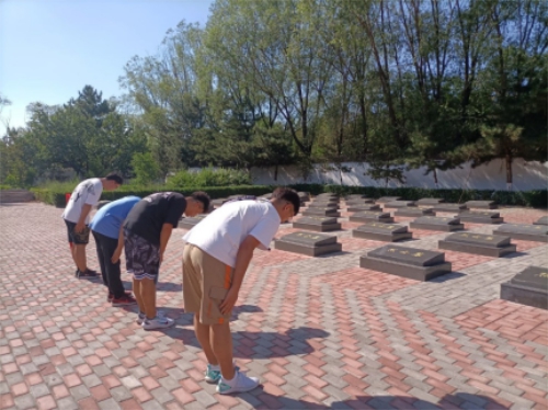 首先,在工作人员的引导下,大家先来到了烈士纪念碑,大家绕碑瞻仰,富有年代感的碑文记录着沉重的过往,镌刻着烈士的功绩。看到这些红色印记,我们由衷的感到敬佩。紧接着我们来到了烈士墓,一百多个烈士墓祭奠着烈士的英灵,大家在烈士墓前深鞠躬,表达自己最崇高的敬意和最深挚的追思。