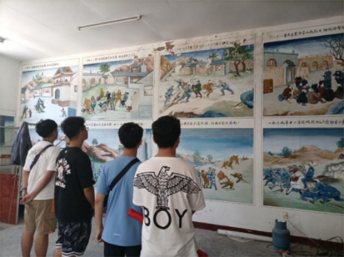 接着,我们来到了展览室。展览室的壁画生动地描绘了二十世纪三十年代在吕梁发生的几次重大战役和日军对当地进行的几次重大侵害。大家通过观看壁画和聆听工作人员的讲解来了解那段红色的历史,了解在战火纷飞的年代,我们的先辈们为了民族解放、国家富强和人民幸福而英勇献身,了解我们的同胞面对日军的侵害却不屈不挠的铮铮铁骨,并且在感悟中学习先辈的革命精神。